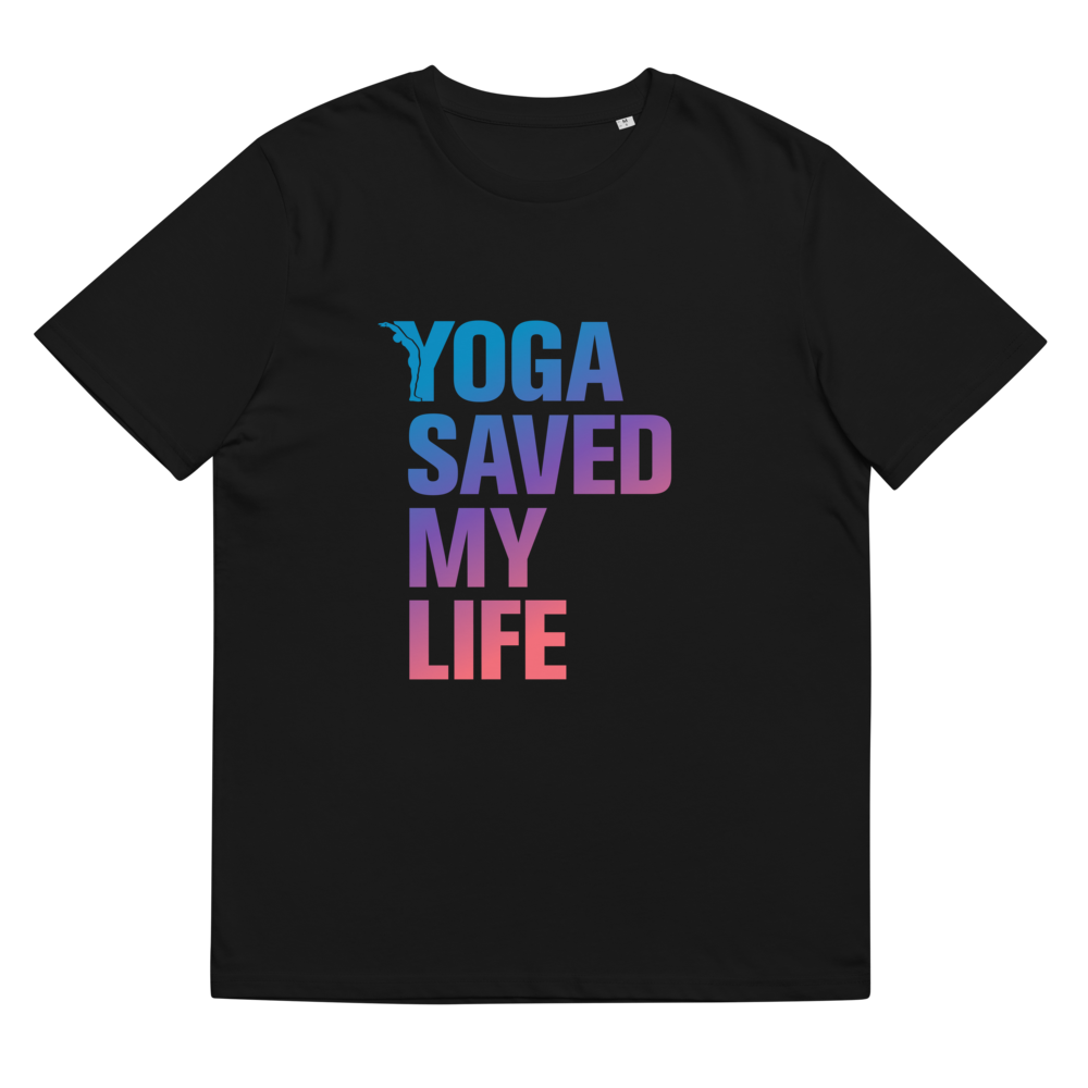T-shirt Bio - Yoga saved my life - dégradé Bleu / Rose - yofe